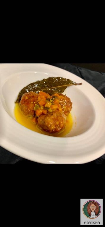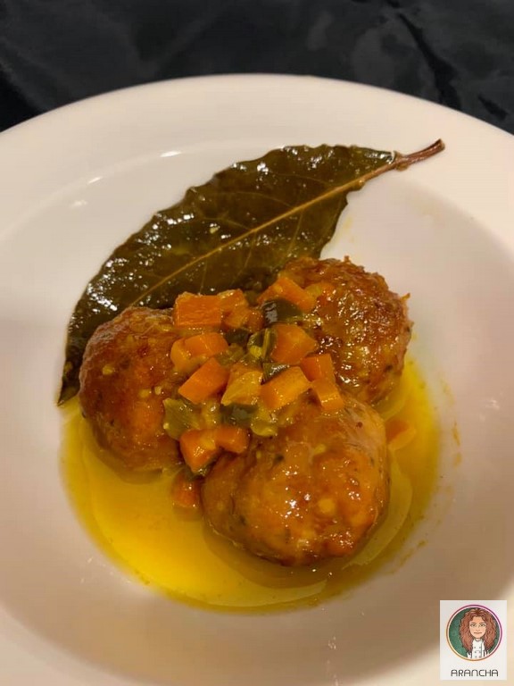 Hoy os traigo un plato de cocina tradicional, albóndigas de carne de cerdo ibérico hechas en casa, con salsa de verduras, laurel gallego, albariño y azafrán de mi cosecha ?