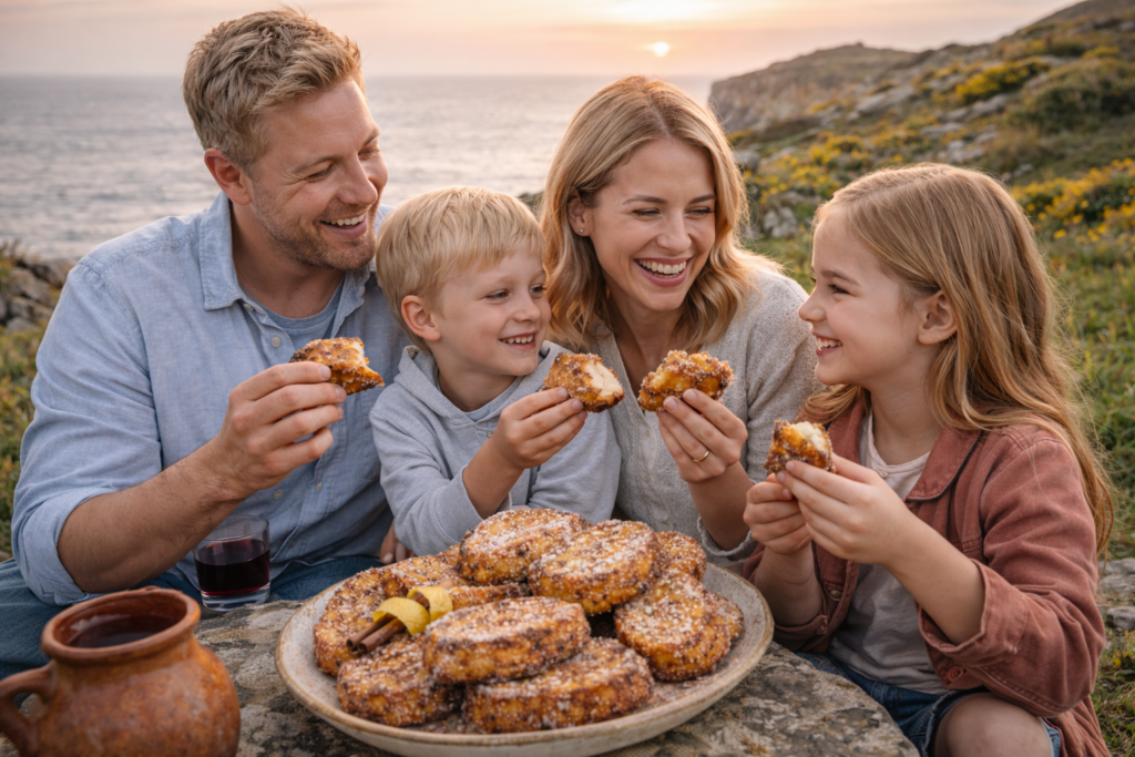 Las torrijas permanecen en la mesa, entre las migas esparcidas en el mantel, también en el azúcar pegajoso que atrapa los dedos de los más pequeños. Las torrijas consiguen la eternidad en la risa compartida y mientras alguien dice solo una más, ellas siguen anclándose a nuestros recuerdos.
